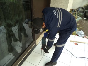 - Penutupan lubang yang sudah dibor dan diinjek dengan semen yang serupa dengan warna keramik atau warna lantai.