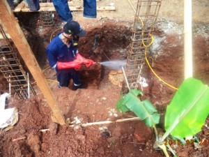 - Spraying, parit pondasi yang sudah di gali.